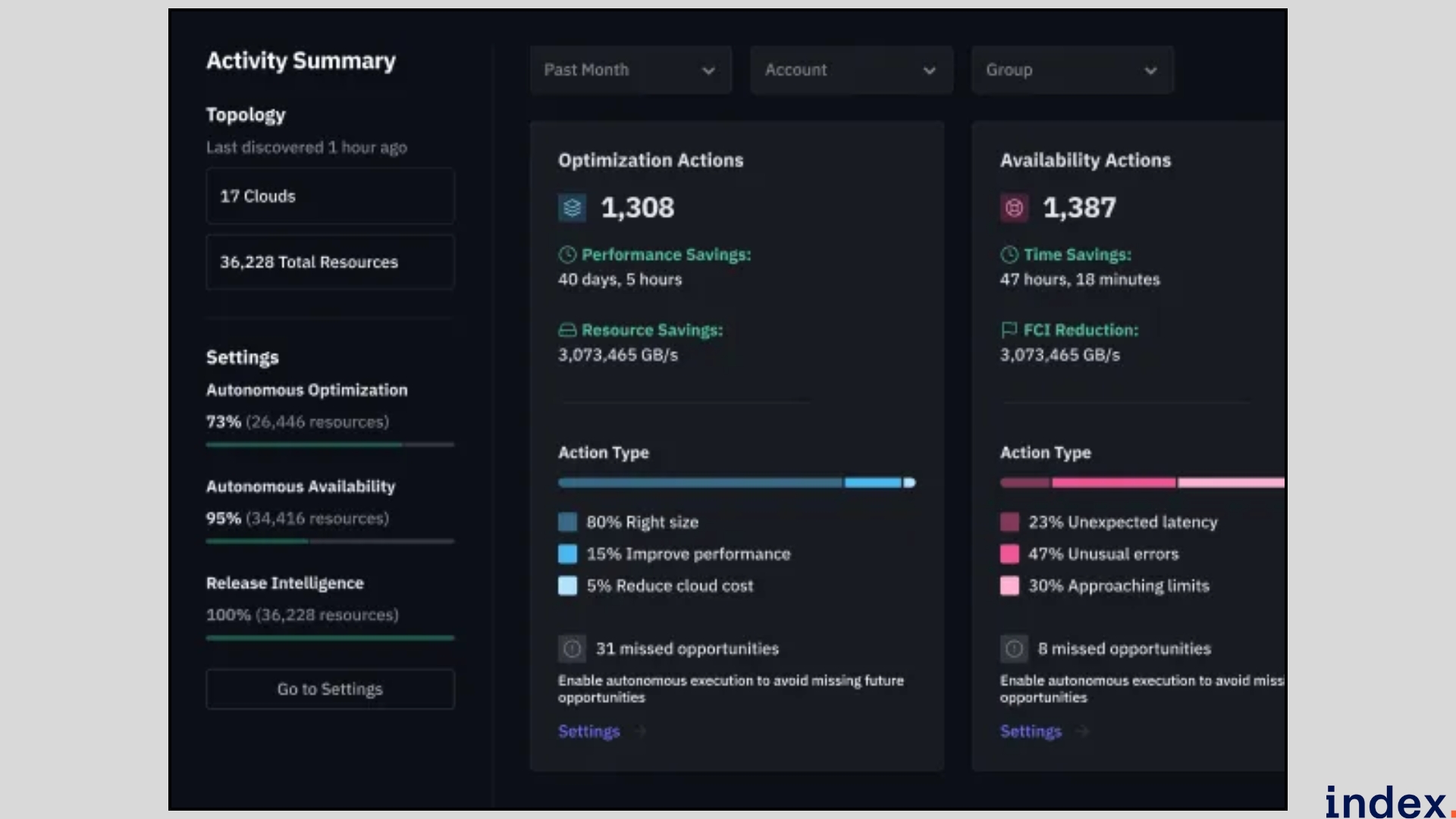 Sedai is an autonomous cloud optimization platform that uses reinforcement learning and predictive impact simulations to safely change infrastructure and application configurations in production. It adjusts autoscaler policies, VM/instance SKUs, container CPU/memory requests & limits, and serverless concurrency based on real traffic signals, while enforcing Smart SLOs and automatic rollback if a change risks latency or availability. Because Sedai validates actions against learned behaviour before execution, it captures deep cost savings without introducing operational incidents.