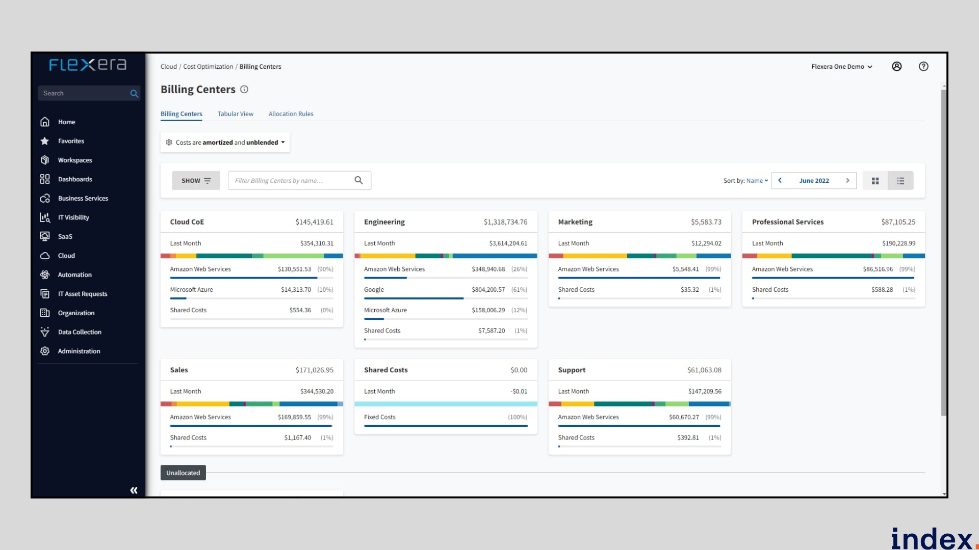Flexera is a powerful, enterprise-grade cloud cost management and optimisation platform that provides organisations with a unified view of multi-cloud spending across AWS, Azure, GCP, and hybrid infrastructures. It goes beyond cost reporting by enabling automated cost allocation, workload placement, and governance-driven optimisation, ensuring that every dollar spent on cloud resources directly contributes to business outcomes.