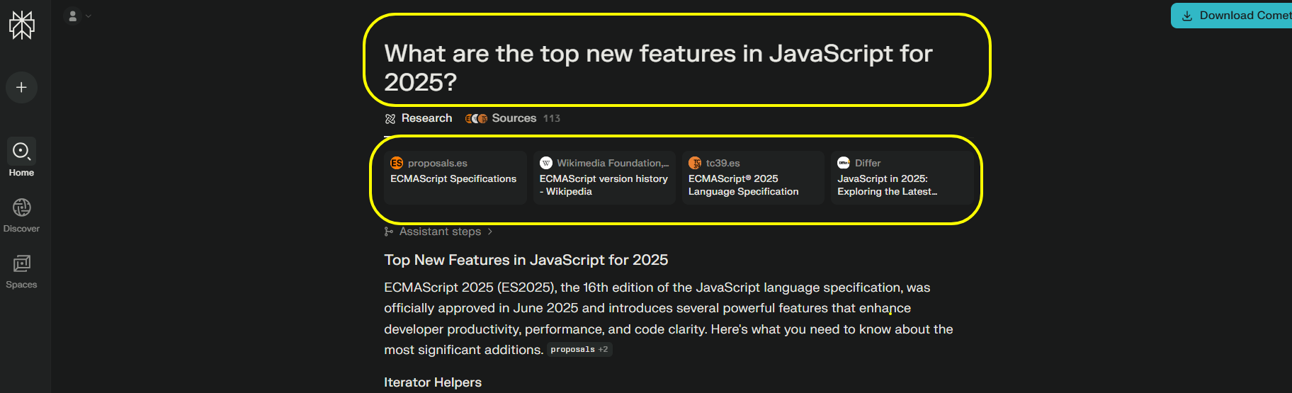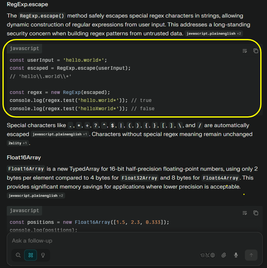 - "What are the top new features in JavaScript for 2025?"