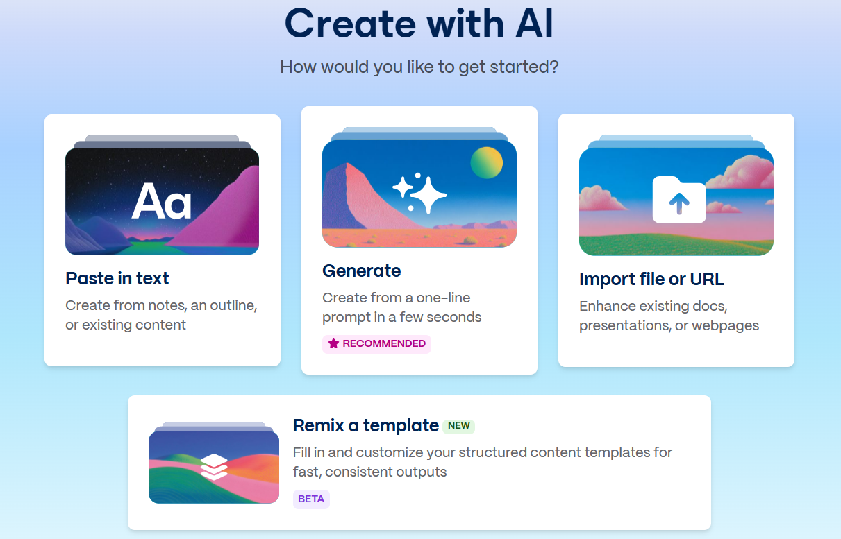 Speed and design. Gamma’s AI covers the heavy lifting: writing, formatting, and even choosing layouts. The interface is user-friendly and collaborative (real-time editing like Google Docs).