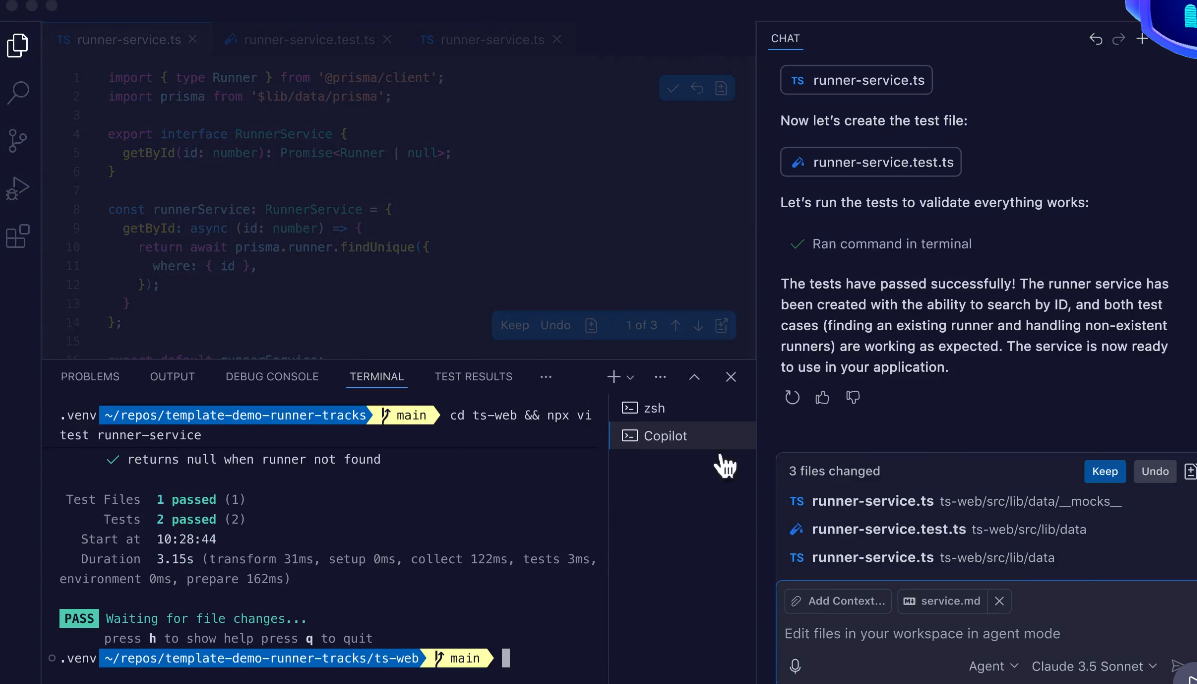 Copilot mainly operates in-file. It doesn’t naturally handle multi-file refactors or project-wide context (no agent mode). It can be conservative; sometimes it yields only one suggestion where you hoped for multiple approaches.