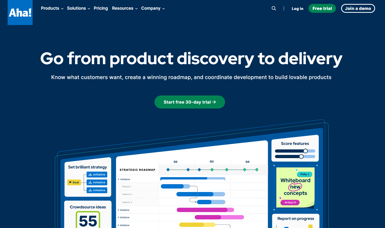 Most roadmap tools show you tasks. Aha! scores features against customer impact, revenue potential, and competitive positioning. Auto-summarizes feedback. Suggests roadmap adjustments based on market data. 89% of users recommend it. 97% renew.