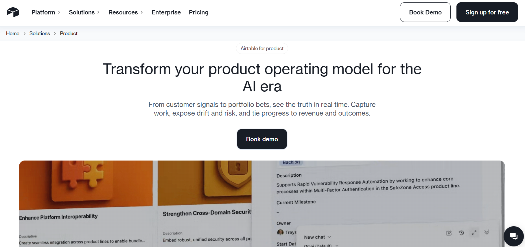 | Airtable ProductCentral | Portfolio management | AI roadmapping + integrations | Request demo |