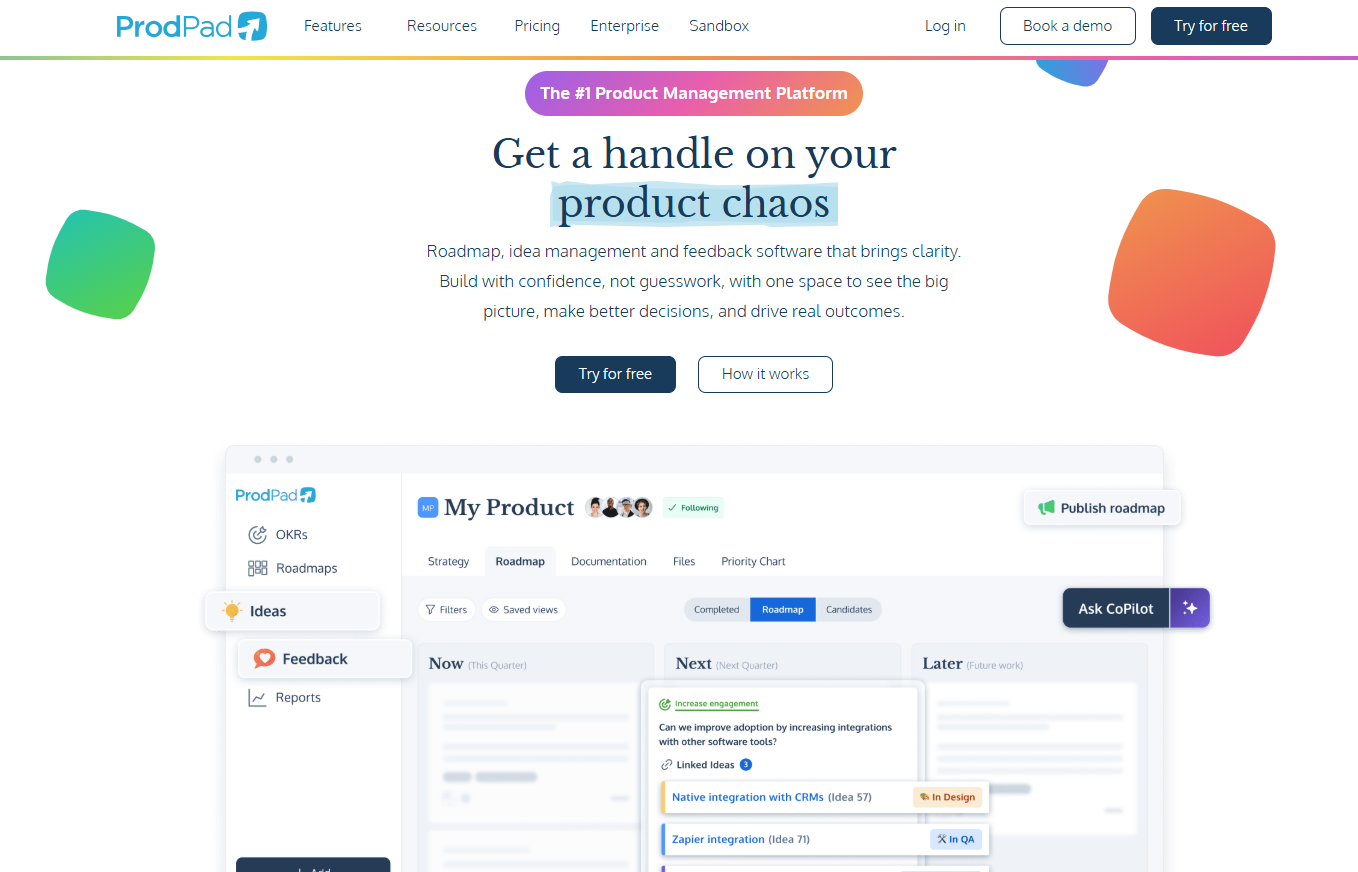 By January 2025, it had generated 11,000 idea descriptions, created 5,000 roadmaps, and linked 6,000 ideas to customer feedback. Two-way sync with Jira and Slack.
