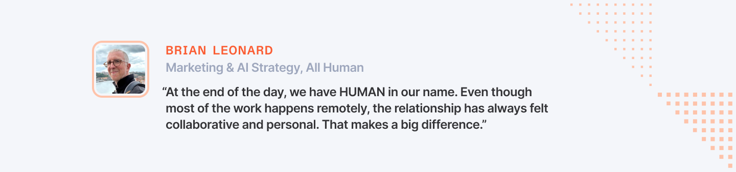 “At the end of the day, we have HUMAN in our name. Even though most of the work happens remotely, the relationship has always felt collaborative and personal. That makes a big difference.”
