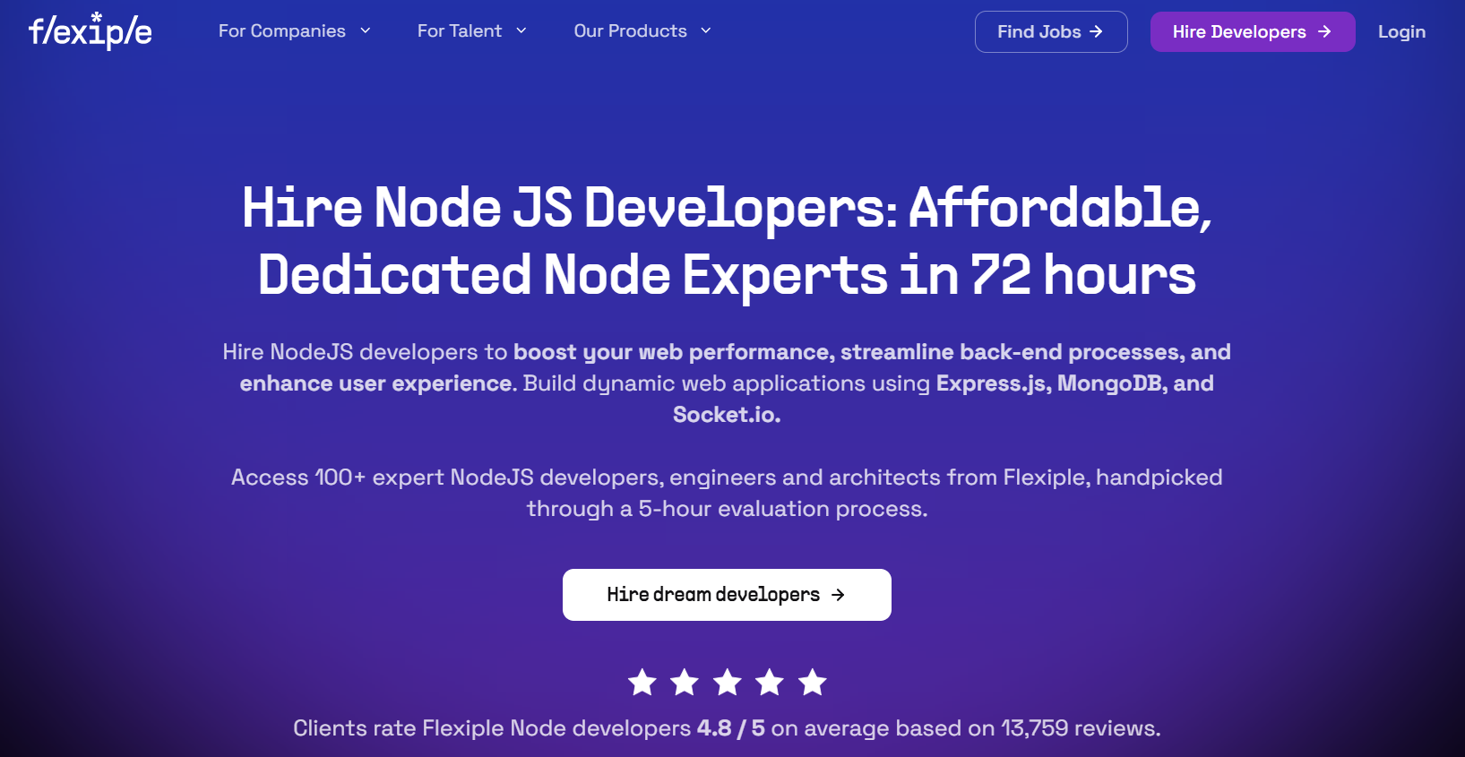 Node.js Track Record: 99% of Flexiple's clients hire talent after a risk-free trial. The platform screens for Express.js/NestJS proficiency and async programming patterns—core skills for scalable backend systems.