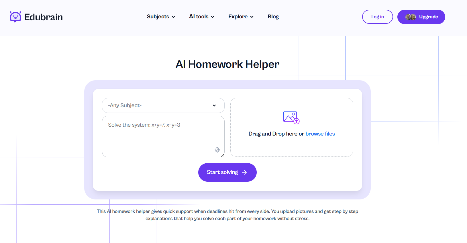 - Handles homework across subjects with image and text inputs.