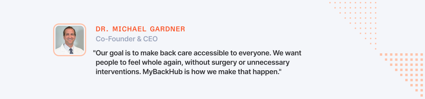 "Our goal is to make back care accessible to everyone. We want people to feel whole again, without surgery or unnecessary interventions. MyBackHub is how we make that happen."