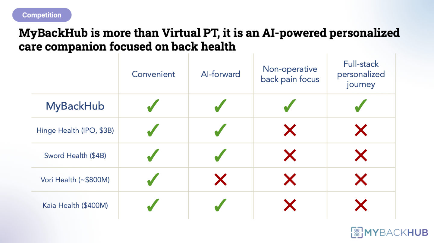 From mild discomfort to chronic conditions, MyBackHub delivers AI-powered diagnostics, personalized care plans, and a mix of virtual and live therapy to help users regain function, reduce pain, and avoid unnecessary surgeries. The platform is simple to use, continuously improving, and designed to make back pain care smarter, faster, and more effective.