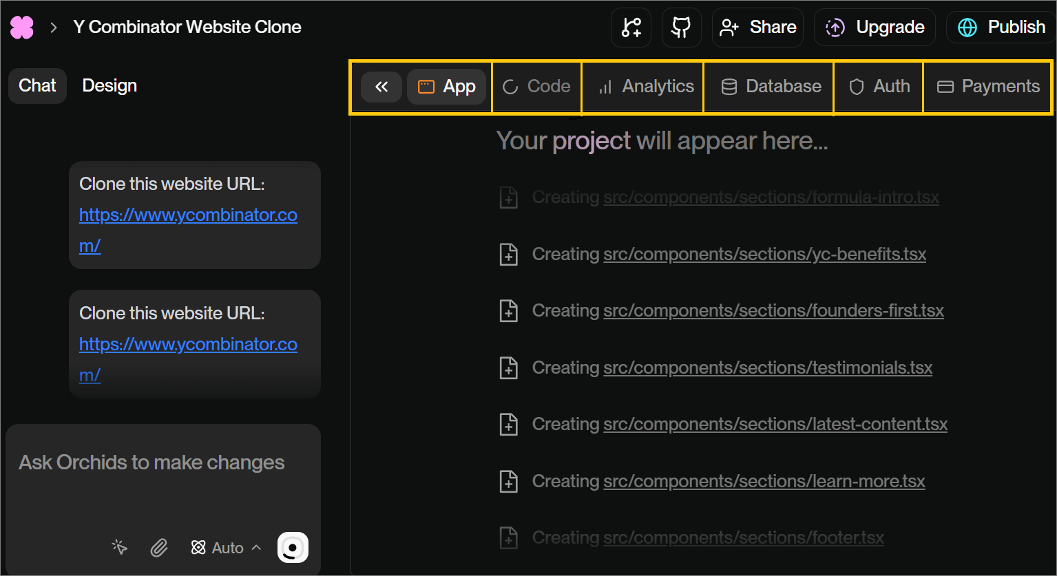 Orchids is the world’s first AI full-stack engineer, a platform that lets us build complete applications by describing them in plain language. Instead of stitching together different tools, Orchids generates the frontend, backend, authentication, database, and even payment flows in one place, with no external integrations required.