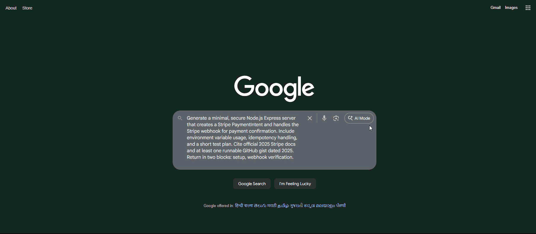 Generate a minimal, secure Node.js Express server that creates a Stripe PaymentIntent and handles the Stripe webhook for payment confirmation. Include environment variable usage, idempotency handling, and a short test plan. Cite official 2025 Stripe docs and at least one runnable GitHub gist dated 2025. Return in two blocks: setup, webhook verification.