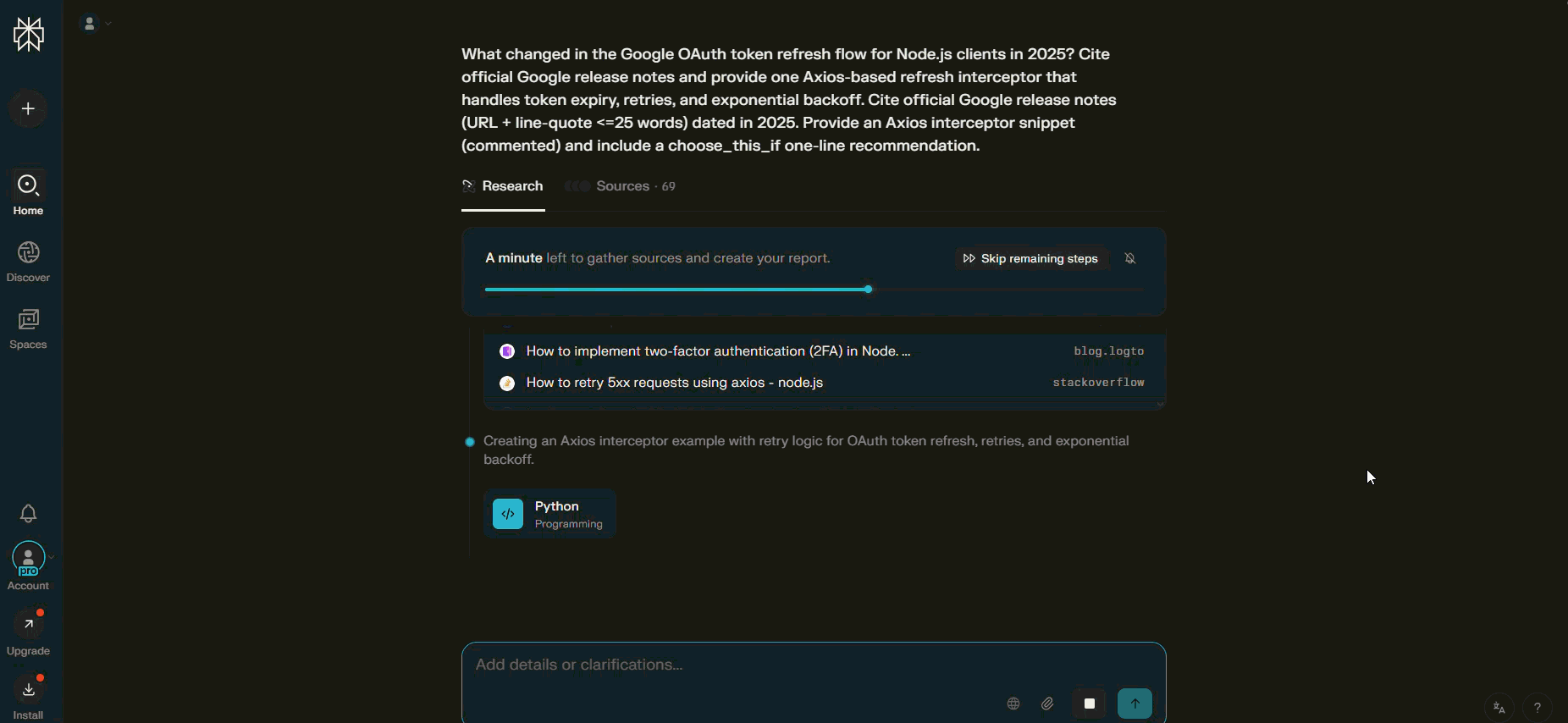 Google provides authoritative library recommendations but lacks implementation detail. Perplexity, provides in-depth coverage of 2025 security changes and ready-to-use, robust code samples.