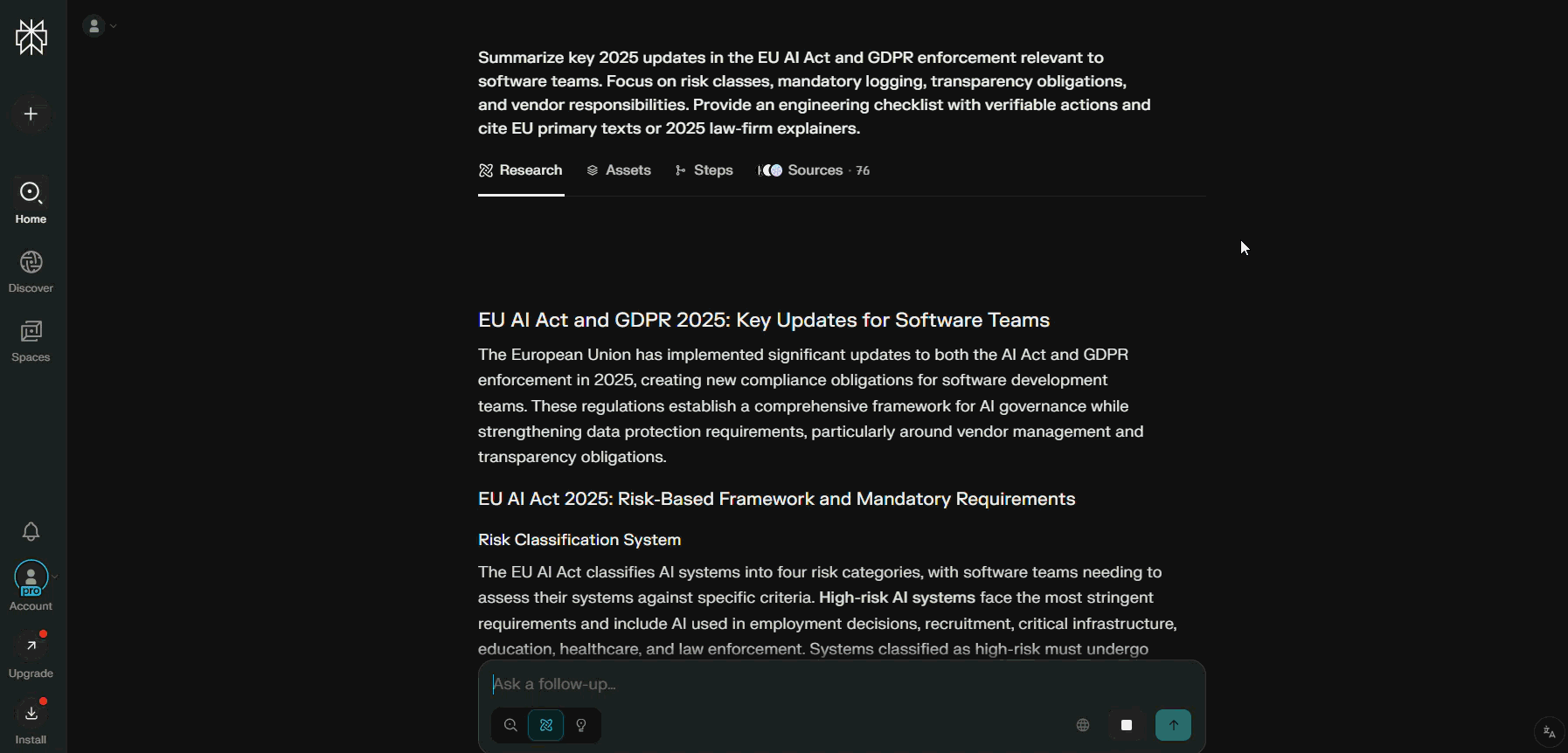 Perplexity AI excels at depth: it’s designed for developers who need verifiable citations, source control, and detailed implementation logic. It’s like having a research analyst who also codes.