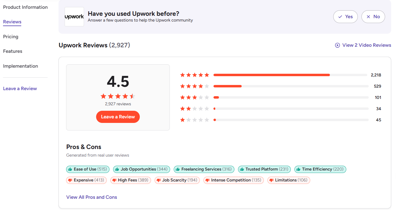 Upwork has a 4.5 star rating on G2, but scroll the reviews and you'll see the same complaint repeated: support goes quiet when things break.