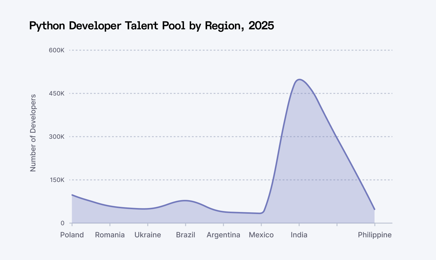 Asia has long been the go-to region for cost-effective outsourcing, and it remains a leading destination for hiring Python developers. Countries like India, the Philippines, and Vietnam have large pools of skilled developers offering competitive rates.