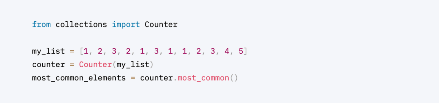 You may use the 'collections.Counter' class to count the occurrences of entries in the list, and then use the'most_common()' function to discover the most frequent elements: