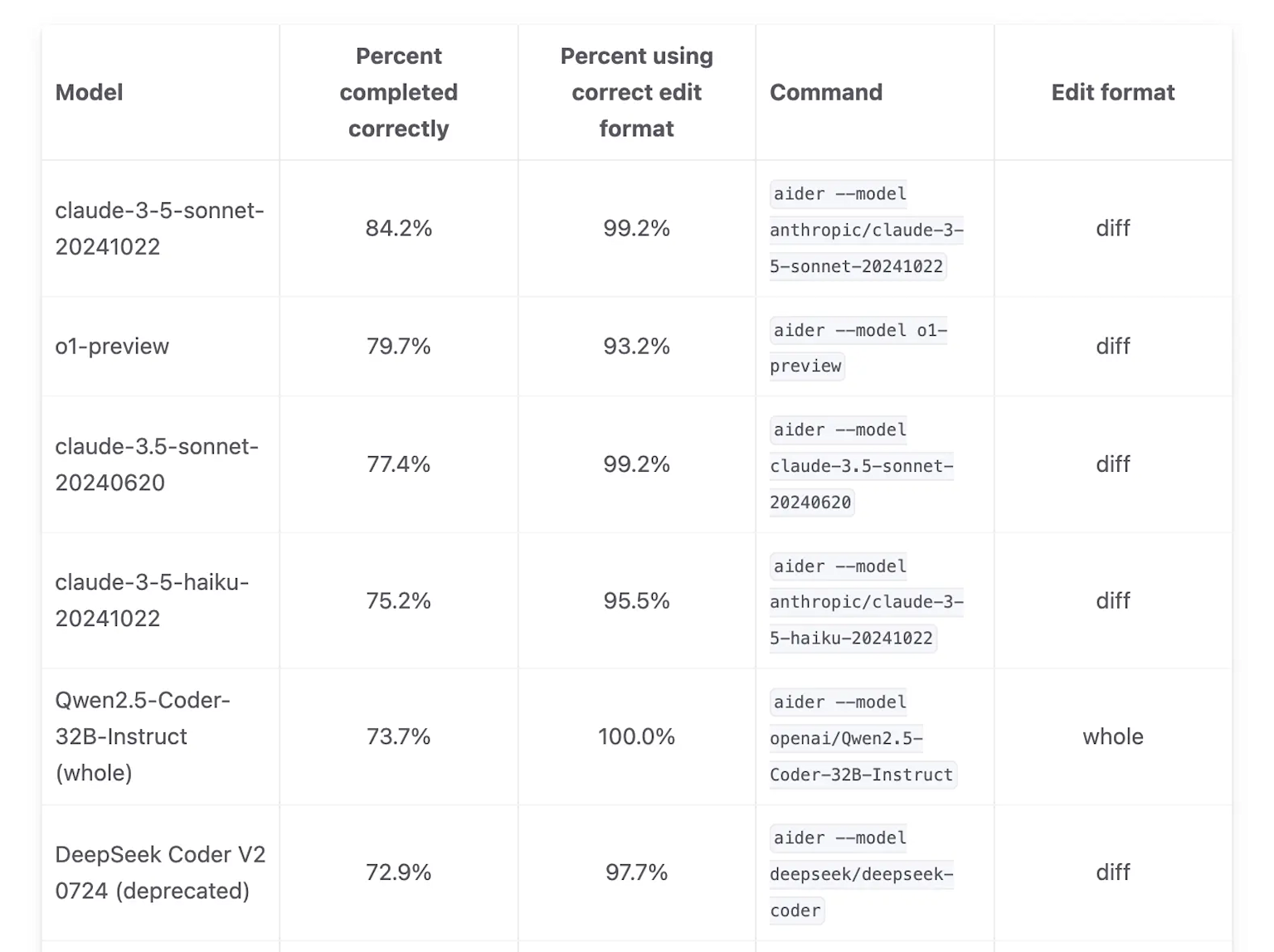 Qwen 2.5 Coder 32B | 50.8% | 2024 |