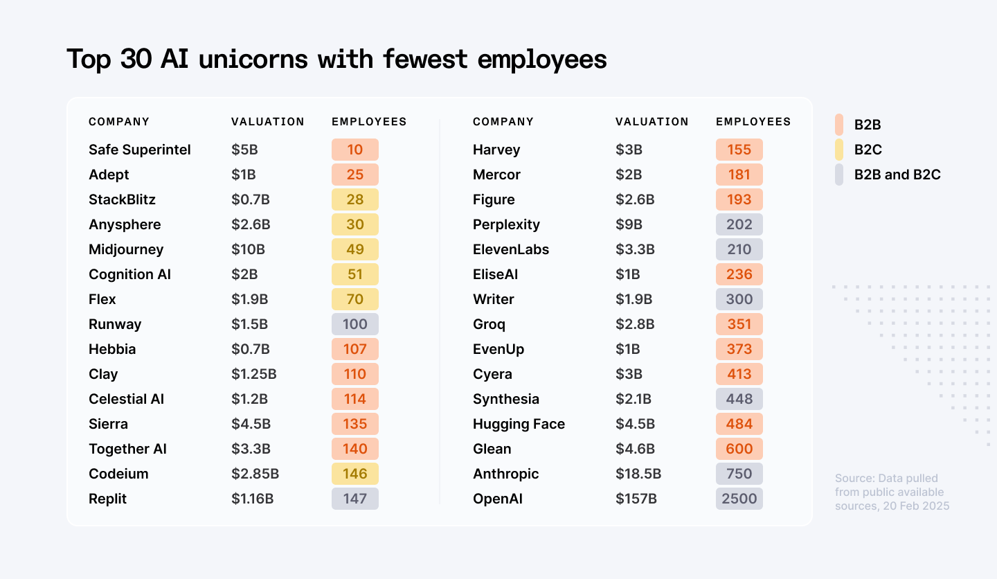 2. Lean teams are a new normal. The reason headcounts are lower isn’t just market caution; founders are realizing quality beats quantity. AI and automation tools have reshaped how much work a small team can output, with some AI startups achieving meaningful ARR with surprisingly lean teams.